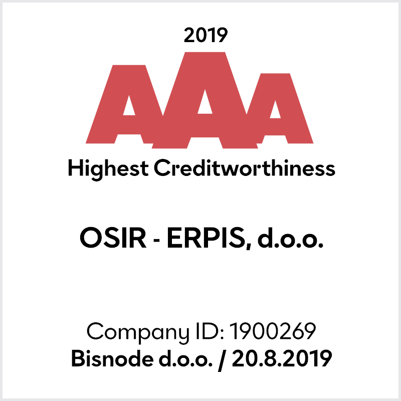 Highest creditworthiness AAA Platinum has been awarded to OSIR-ERPIS